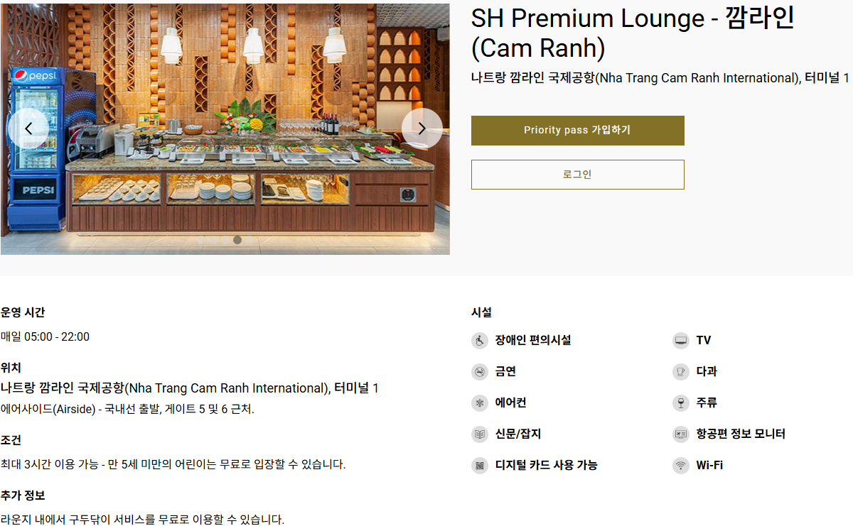 | SH 프리미엄 라운지 | ₫450,000 VND (~US$20) | Priority Pass, DragonPass |