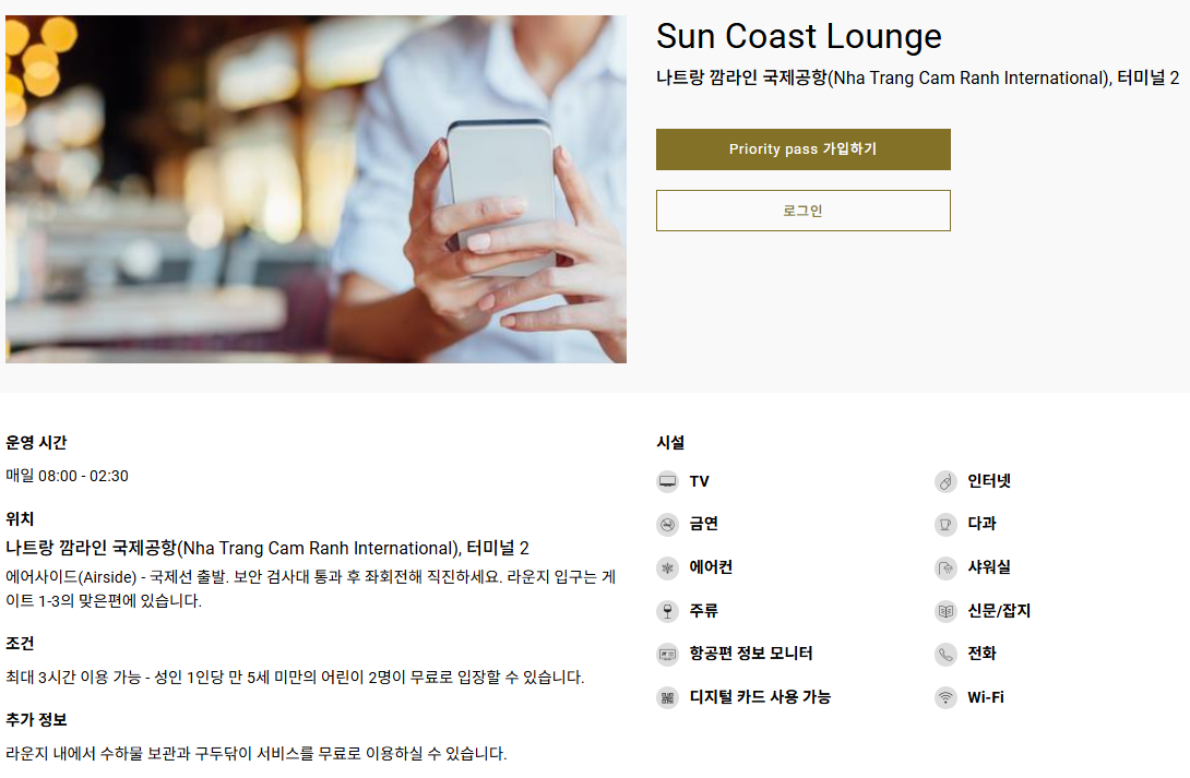 - DragonPass: 항공사나 호텔 멤버십과 연동되거나, 별도로 구매 가능한 멤버십입니다. 나트랑 내 모든 라운지에서 사용할 수 있습니다.