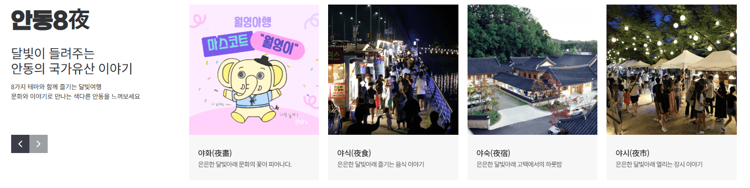 ‘달빛이 들려주는 안동의 국가유산 이야기’라는 슬로건 아래, 8가지 테마는 단순한 볼거리 이상의 깊이 있는 경험을 제공합니다.