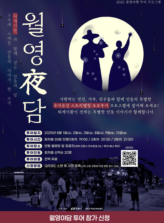 퍼포먼스와 역사 해설이 결합된 공간에서, 달빛 아래 펼쳐지는 과거 안동의 이야기. 퇴계 이황 선생의 사상과 그 시대의 정서를 입체적으로 만날 수 있습니다.