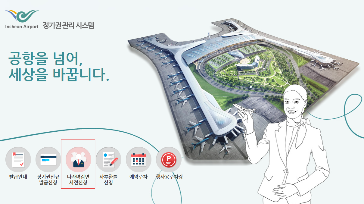 다자녀 감면은 인천공항 정기권관리시스템에서 간편하게 신청할 수 있습니다. 초기 1회 등록만 하면 이후 자동으로 감면 적용됩니다.
